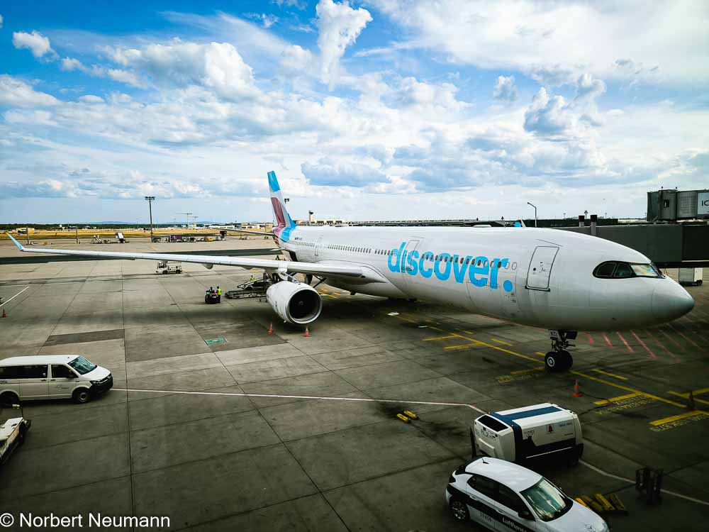 Unser Flug 4Y133 ist für 19:20 Uhr angesagt. Die Koffer sind eingecheckt und das Boarding beginnt um 18:30 Uhr. Wir haben einen ruhigen Flug und landen pünktlich um 05:25 Uhr am Frankfurter Flughafen.