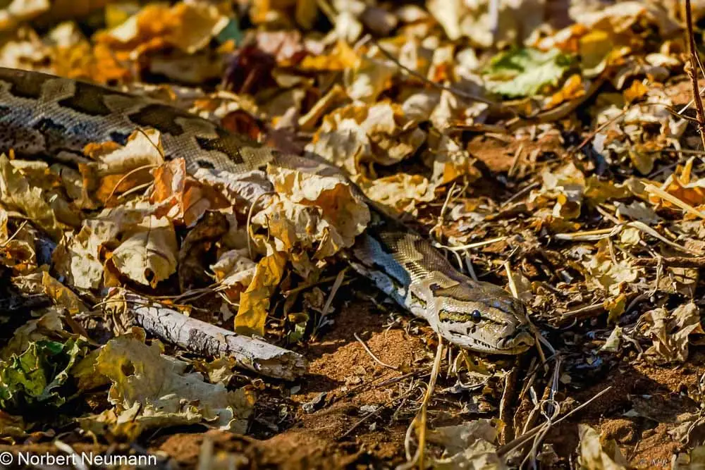 Kurz vor dem Ausgang gibt es noch einen Stau. Was gibt es hier noch zu sehen? Zunächst sieht man nichts. Doch da, eine Schlange, wahrscheinlich eine Python. Was für ein Glück!