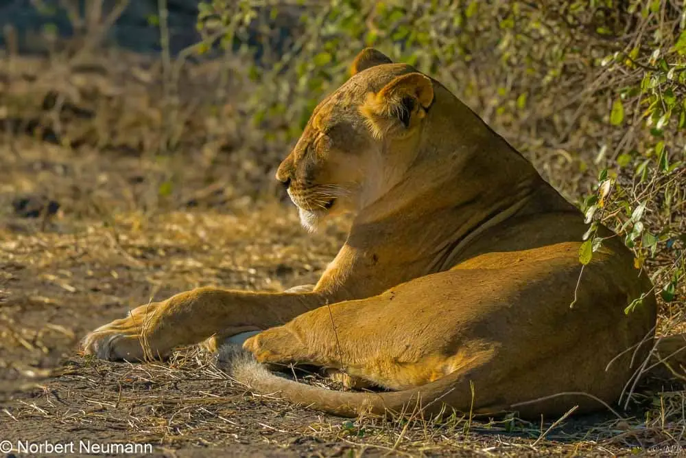 Und dann entdecken wir ihn. Den König der Tiere. Zuerst noch weit weg, aber dann pirschen wir uns langsam näher. Jetzt sind es nur noch drei bis vier Meter und mein Bauchgefühl sagt mir, dass es genug ist. Man sollte diesen Tieren nicht so nahe kommen. Nicht aus Angst, sondern einfach aus Respekt. Wir dringen ohne Einladung in ihren Lebensraum, ihr Zuhause ein und machen Lärm und verpesten die Luft. Dennoch sind sie schön anzusehen.