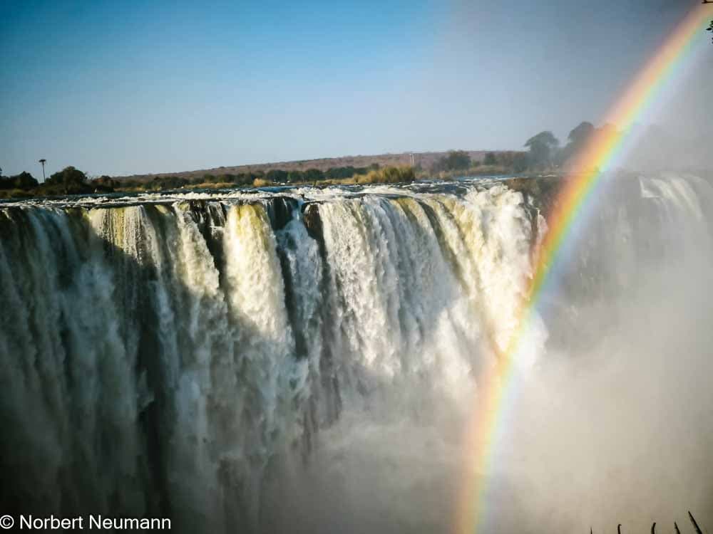 Wir hoffen, dadurch mehr Tiere beobachten zu können. Außerdem ist der Wasserstand an den Viktoriafällen im Juli nicht mehr so hoch wie in der Regenzeit, sodass der Sprühnebel geringer ausfällt. Die Sicht auf die Wasserfälle ist dann deutlich besser.