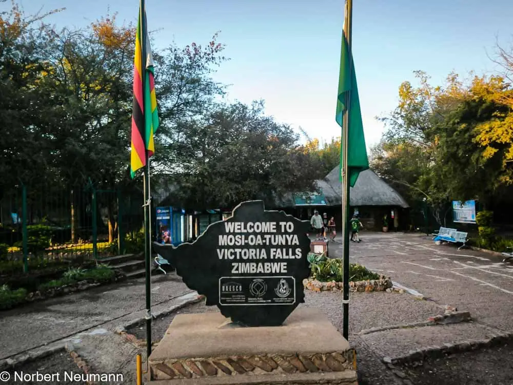 Nach weiteren anderthalb Stunden in der Luft landen wir in Victoria Falls, Simbabwe. Für Simbabwe benötigen wir ein Visum, das wir direkt bei der Ankunft am Flughafen für 30 US-Dollar in bar erhalten.