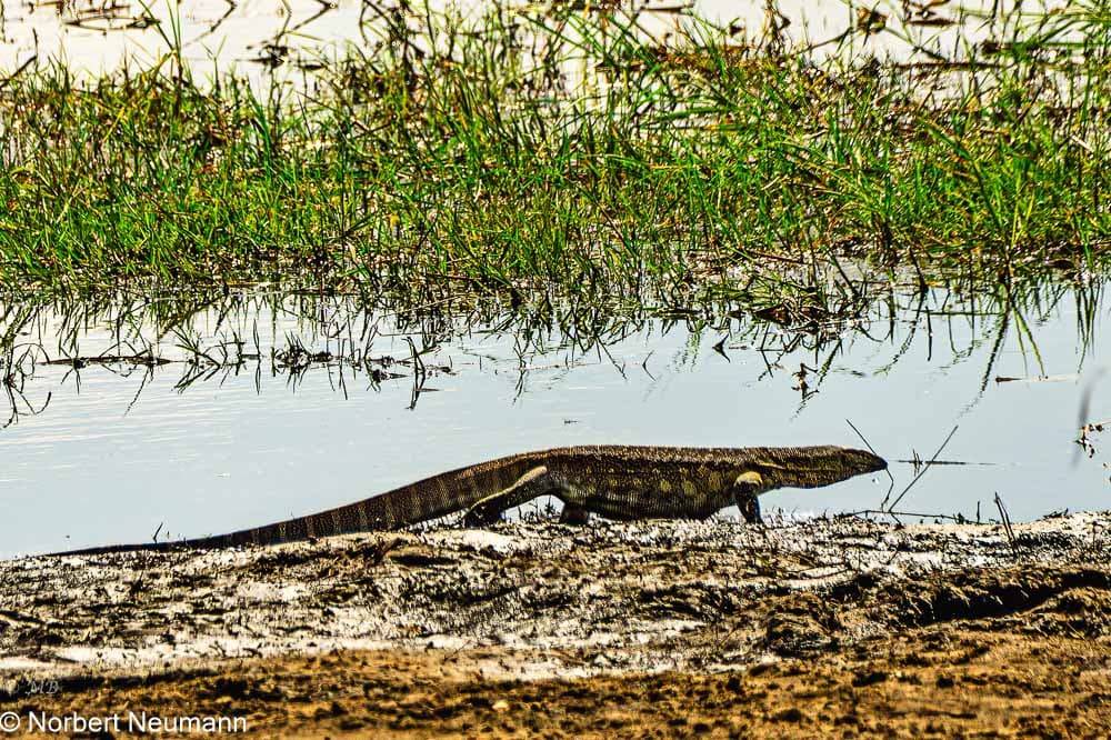 Wir fahren entlang eines Uferweges und können einen Waran sehen. Leider bleibt der Leopard verborgen. Trotzdem ist es immer wieder ein Vergnügen, so viele Tiere zu beobachten. Diese Reise ist einfach traumhaft.