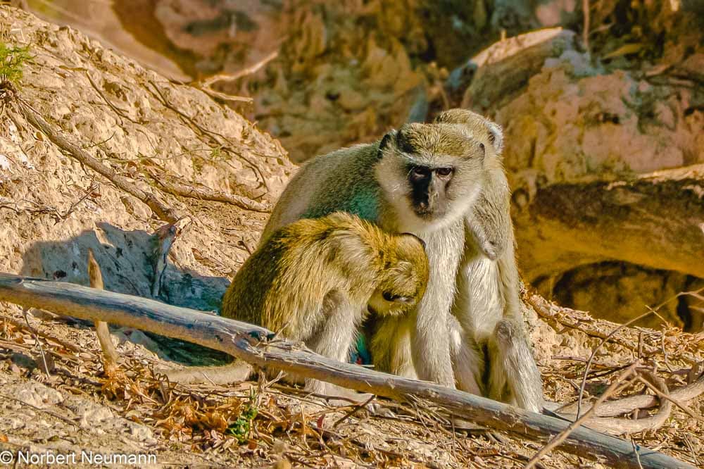 Gegen 10:30 Uhr sind wir von unserer Wanderung zurück. Bis 16:00 Uhr genießen wir die großartige Aussicht von unserer Terrasse oder dem Hauptgebäude und beobachten eine Gruppe Paviane an der nahegelegenen Wasserstelle.