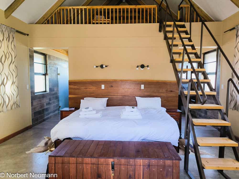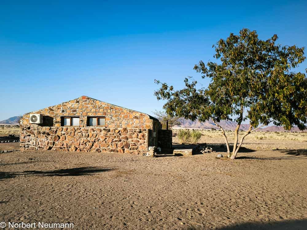 Von Solitaire führt die C19 weiter in Richtung Sesriem. Die Berge werden rötlicher, kantiger und dramatischer. Das Licht verändert sich, als würde jemand langsam den Goldfilter hochdrehen. Dann taucht sie endlich auf: die Little Sossuss Lodge. Gegen 16:00 Uhr haben wir unser Ziel erreicht.