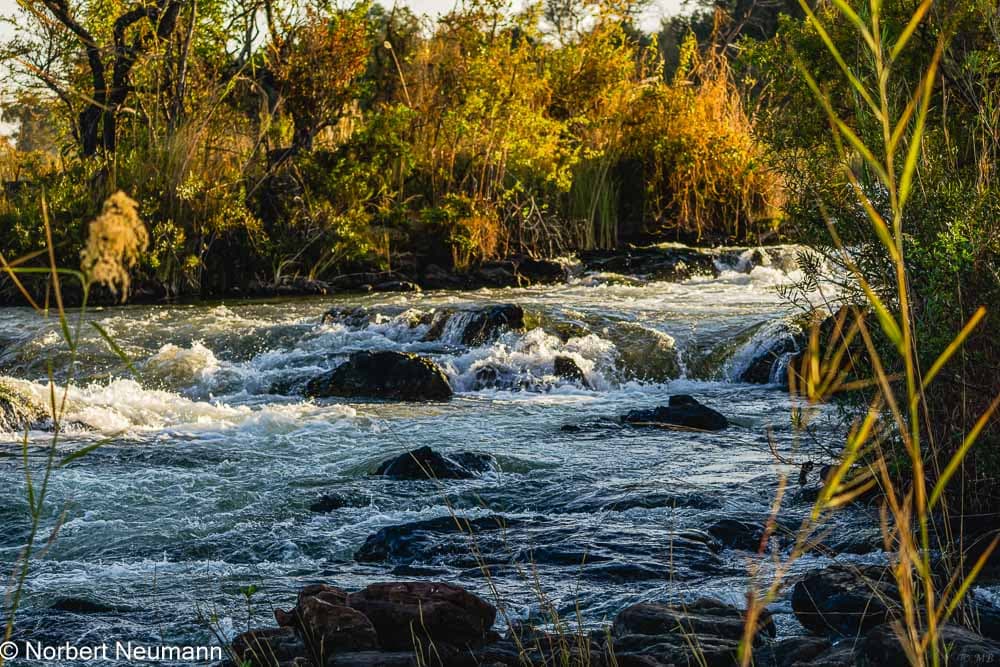 Am Nachmittag erkunden wir die Wasserfälle zu Fuß. Christopher bringt uns den kurzen Weg bis zum Eingang, kümmert sich um die Eintrittskarten und legt eine Uhrzeit fest für die, die mit dem Minibus zurück zur Lodge fahren möchten. Die anderen können sich mehr Zeit lassen und dann zu Fuß zurückgehen.