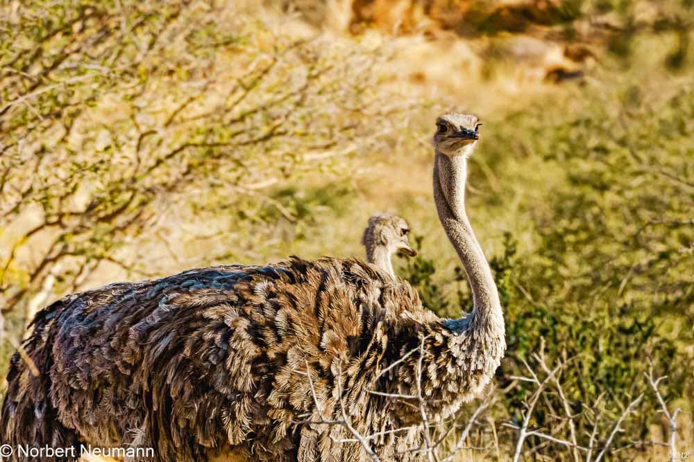Es geht auf Safari im tierreichen westlichen Bwata-Nationalpark. Wir hoffen, heute einen Leoparden zu entdecken. Zuerst werden wir allerdings von ein paar Straußen empfangen.