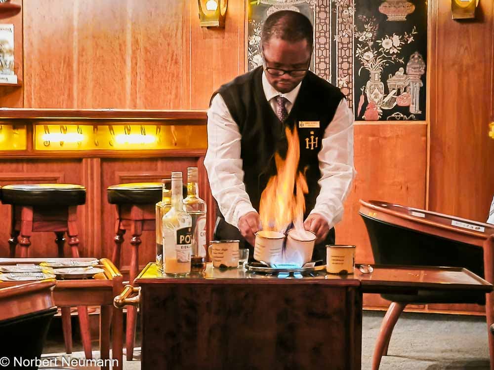 Zurück im Hansa Hotel gönnen wir uns eine ganz besondere Spezialität des Hauses, einen Colonial Coffee. Der Colonial Coffee im Hansa Hotel ist nicht nur ein Getränk, sondern ein kleines Schauspiel. Ein Kellner kommt mit einem kleinen Servierwagen, auf dem alles bereitliegt: