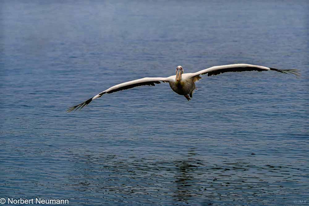 Sobald wir dem Hafen näher kommen, gesellt sich wieder eine Robbe zu uns auf das Deck, und sogar ein Pelikan fliegt heran und fordert seine „Hafengebühr“ in Form von Fisch ein.
