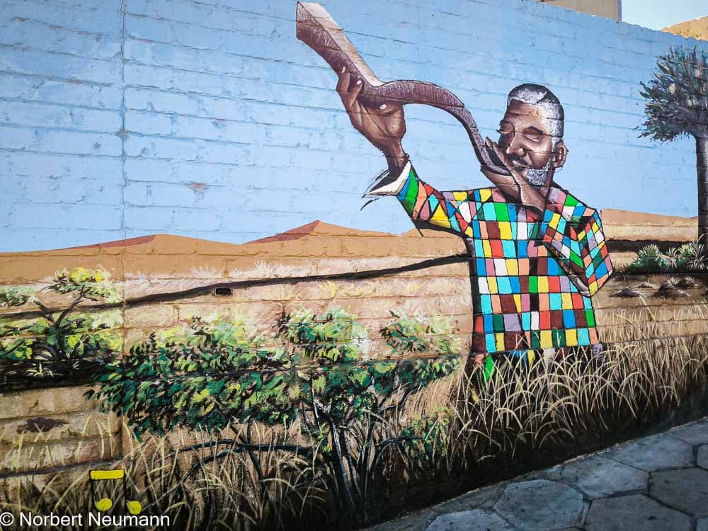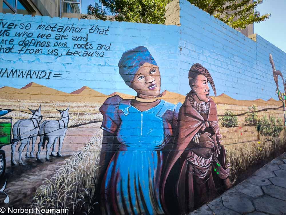 Um 10:00 Uhr erkunden wir bei einer kurzen Rundfahrt die Stadt und ihren historischen Kern rund um die Christuskirche und den Tintenpalast. Danach geht es in die Township Katutura. Anschließend besuchen wir die Fraueninitiative Penduka.